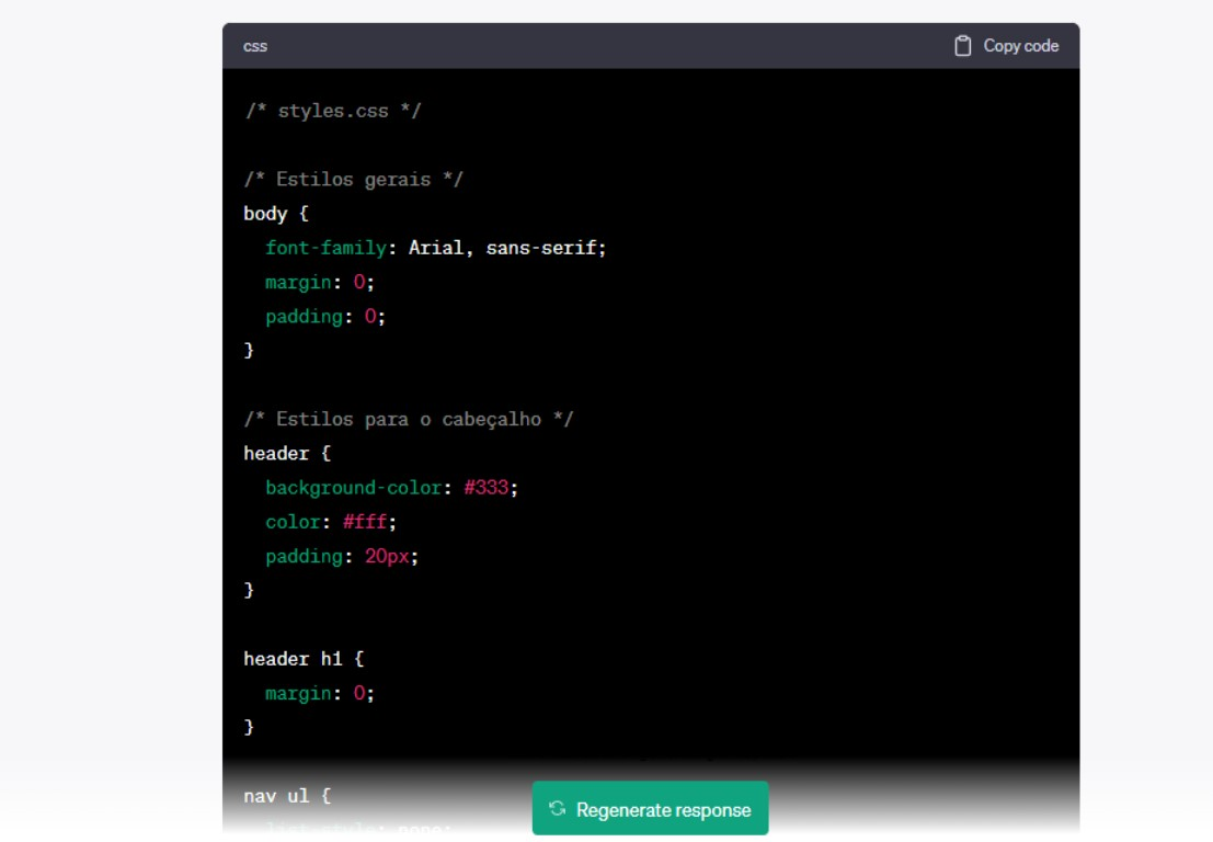 O ChatGPT informa que o CSS permite personalizar o site. Então, digite na conversa com a IA a seguinte frase: “crie um estilo para o site usando CSS”.