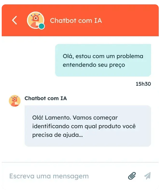 O chatbot com IA da HubSpot pode qualificar leads, agendar reuniões, dar respostas a perguntas comuns de clientes e muito mais. Assim, suas equipes de marketing, vendas e atendimento ao cliente terão mais tempo para se concentrar nas conversas que exigem mais atenção.