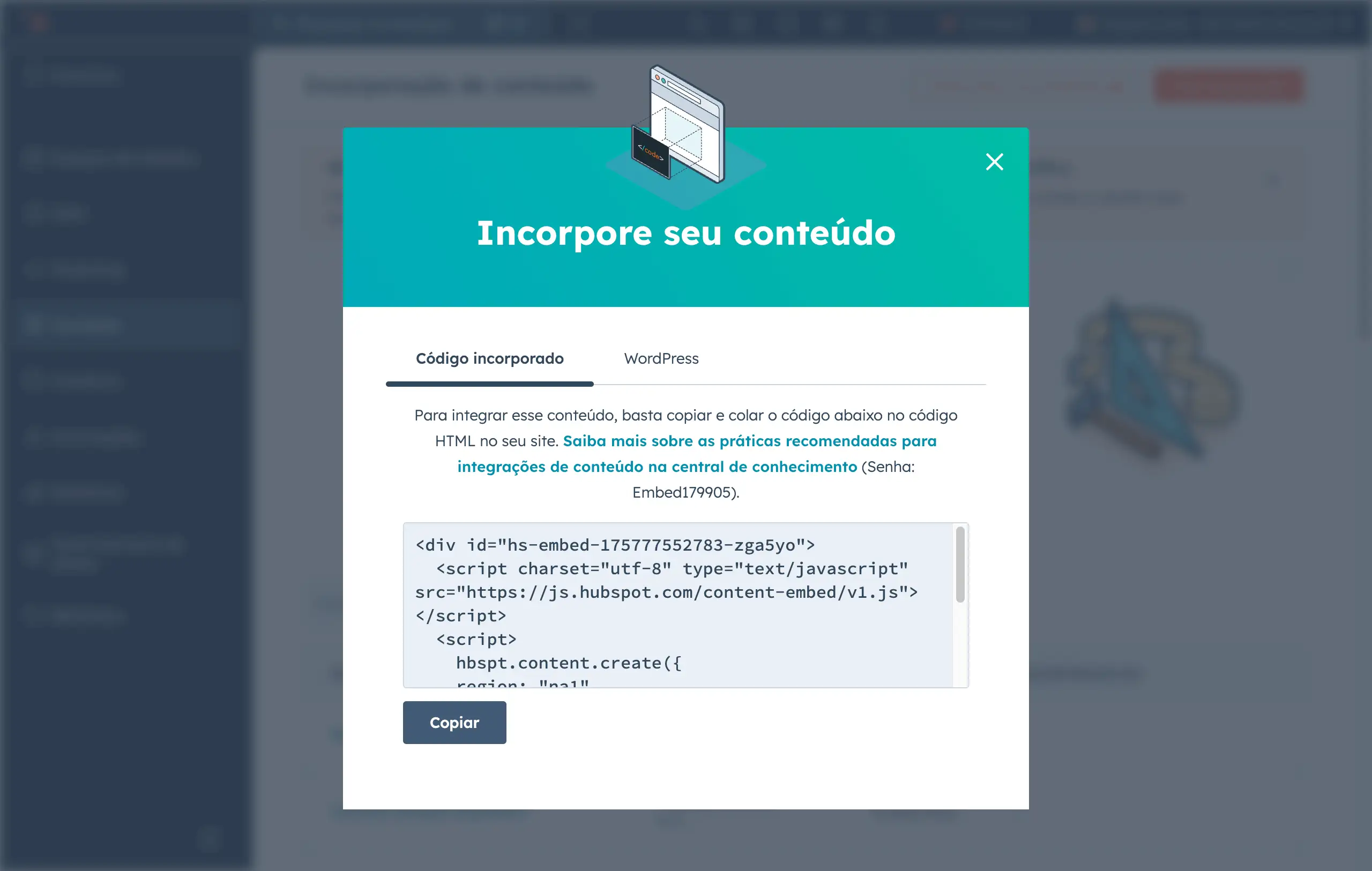 Com a incorporação de conteúdo (content embedding) , você pode criar e personalizar seu conteúdo na HubSpot e integrá-lo perfeitamente ao seu site, sem necessidade de conhecimento de programação ou design. Com blocos de conteúdo dinâmico e uma variedade de módulos, agora você pode aproveitar facilmente o poder dos recursos de criação de conteúdo da HubSpot diretamente no seu site. Tenha uma experiência de conteúdo mais flexível e personalizada com as incorporações de conteúdo da HubSpot.