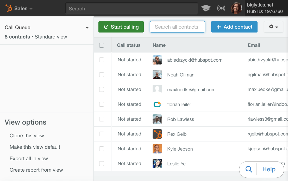 Use dados de envolvimento e propriedade do contato, disponíveis no HubSpot CRM, para priorizar as melhores chamadas e configurar uma sequência diária de chamadas.