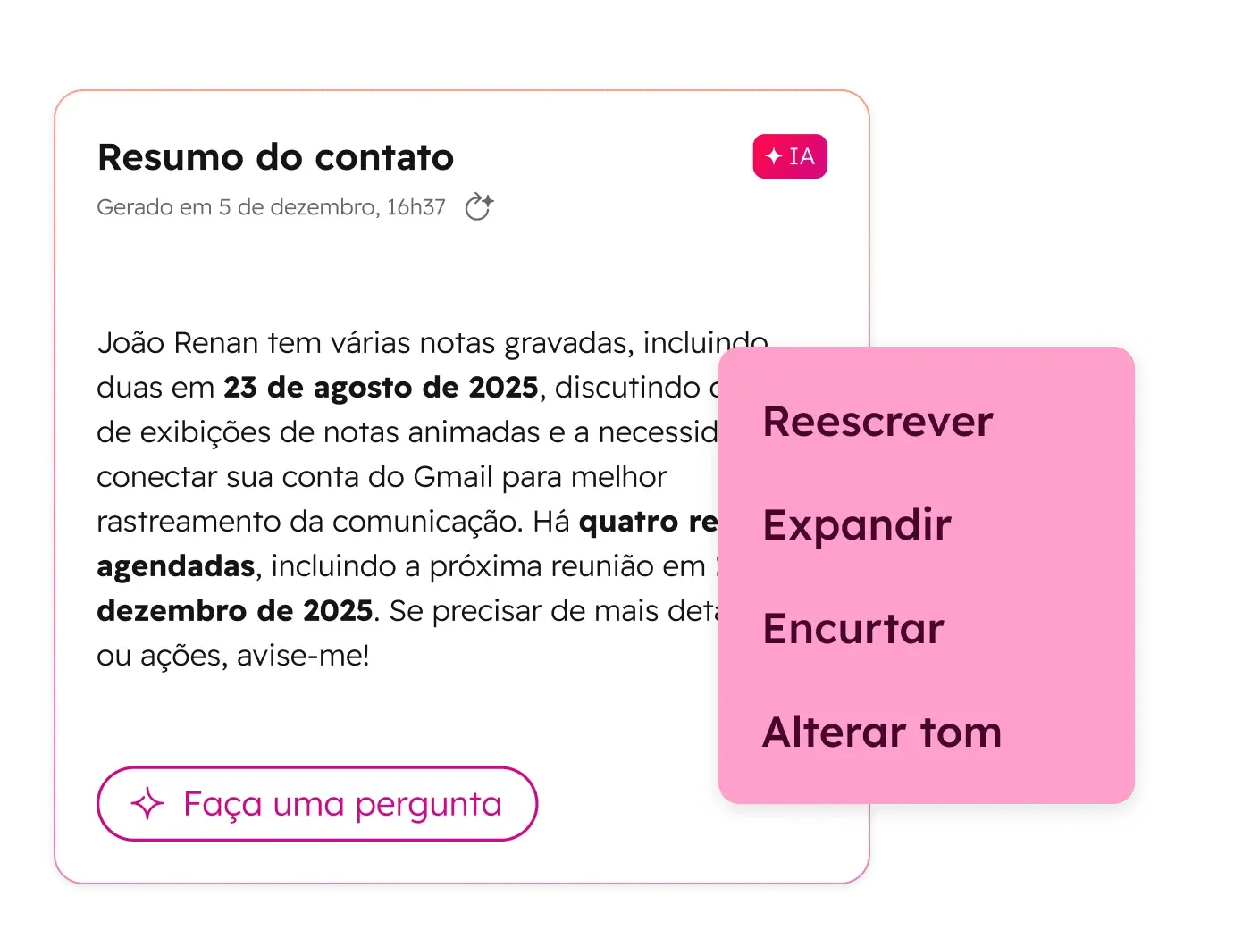 Venda com confiança usando resumos de negócios gerados por IA. Capture e gerencie informações de negócios e priorize próximas etapas de alto impacto.