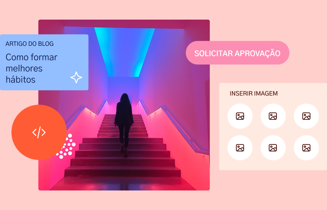 Crie conteúdo dinâmico e multiplataforma com o Content Embed; gerencie aprovações das partes interessadas com o recurso Aprovações de Conteúdo; e agilize a entrega com a Biblioteca de Conteúdo e Blogs de Membros.