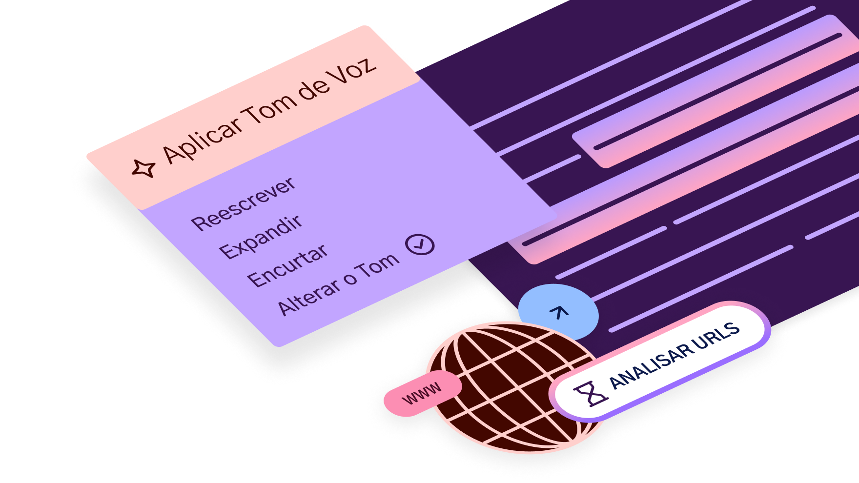 O Tom de Voz aprende automaticamente o estilo e o tom da sua marca e os aplica a todo o seu conteúdo futuro.